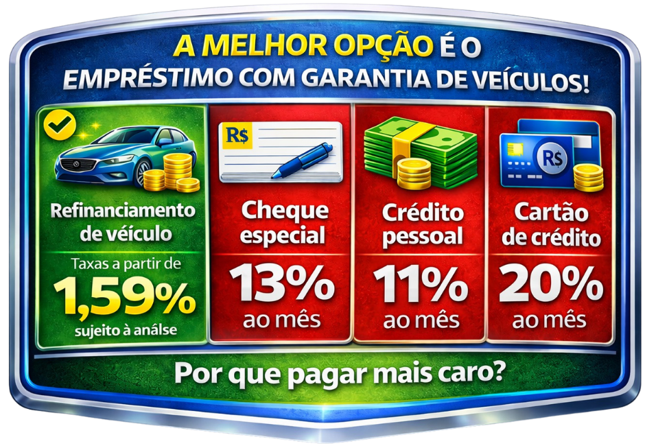 O EMPRÉSTIMO COM GARANTIA DE VEÍCULO é uma modalidade de crédito que permite utilizar o seu automóvel como garantia para obter dinheiro de forma rápida e segura.